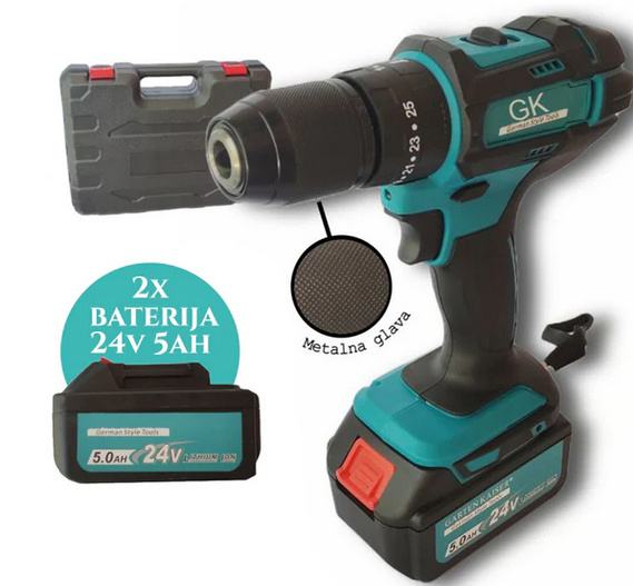 Brutalno jaka Aku bušilica sa funkcijom čekića, metalnom glavom i zaista rijetkim prihvatom do 13 mm.