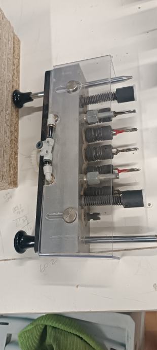 Grass EcoFlex za bušenje i presanje panti (Grass i Blum)i bušenje 7 rednih rupa u razmaku 32 mm, proizveden 2009, kupljen prije pola godine u Austriji od proizvođača obnovljen s novim glavama za pante i redne rupe. Moguće kupiti i ciklon usisavač, također nov kupljen prije pola godine u Bauhusu. Praktički nova glodala i za pante i redne rupe. Prodajem jer sam prešao na kompletno CNC bušenje i tiplanje kompletnih korpusa.