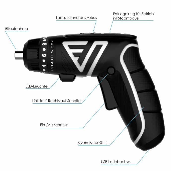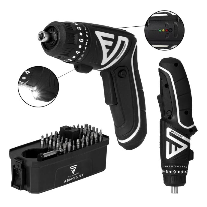 STAHLWERK akumulatorski odvijač, snažan i kompaktan motor od 3,6 V, s ergonomskom ručkom, integriranom baterijom od 1,3 Ah i punjačem, sa 7 godina jamstva na alat!