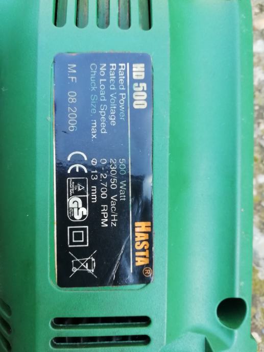 Prodajem udarnu bušilicu Hasta HD 500 u odličnom ispravnom stanju. Cijena 15 eura. Mogućnost slanja putem pošte i slično.