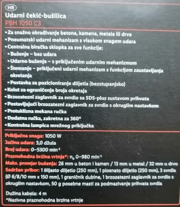 Udarnič čekić bušilica Parkside 1050W novo 3 godine garancija.