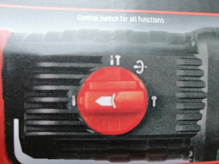 Centralna biračka sklopka za sve funkcije: bušenje, priključni udarni mehanizam za štemanje ili udarno bušenje i podešavanje pozicije dlijeta