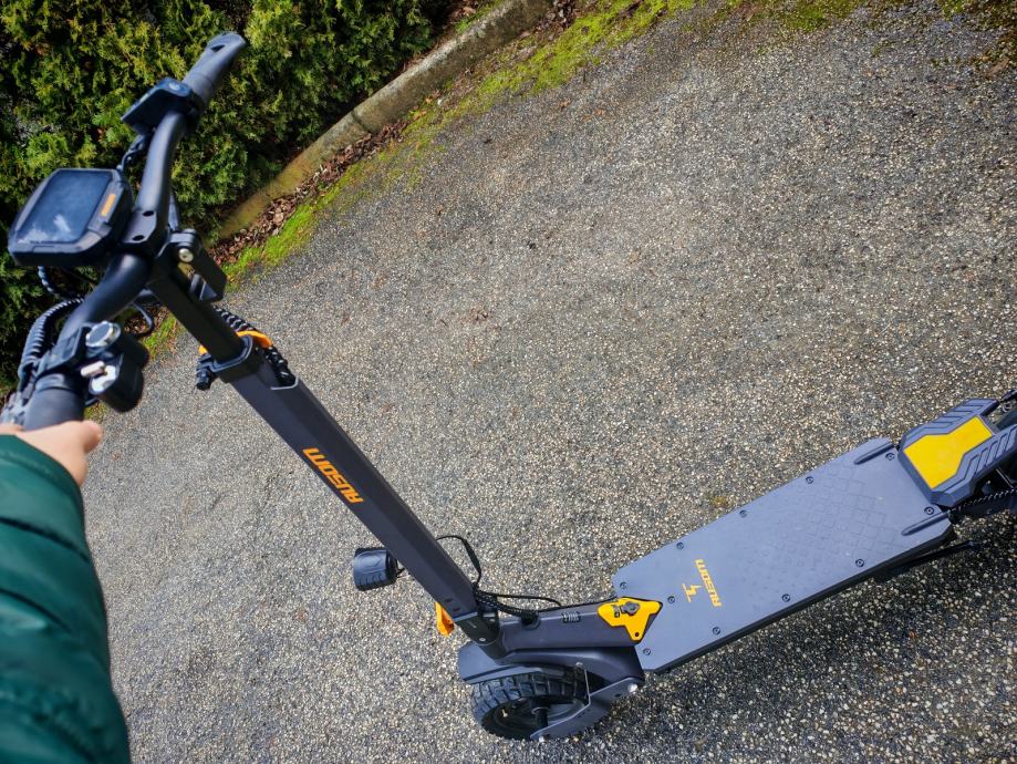Brža vožnja je užitak zbog guma, amortizirajuceg ovjesa, širokog rukohvata te urezanog utora s kojim nema vijudanja jer romobil drži ravno.