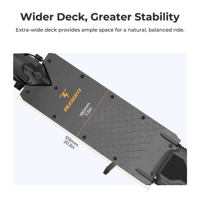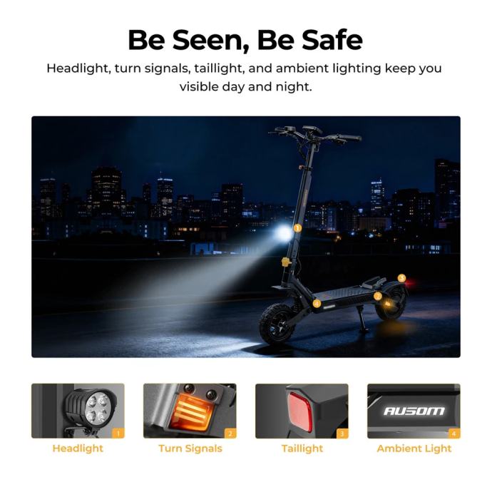 Prodaje se Ausom L1 Max električni romobil opremljen je snažnim 1000W motorom (vršna snaga 1344W) i 48V 20.8Ah baterijom koja omogućava doseg do 90 kilometara i maksimalnu brzinu od 50 km/h. Romobil ima naprednu swingarm oprugu osovinu s podesivim oprugama, 10-inčne bezdušne gumene gume i dvojne disk kočnice s E-ABS sustavom za maksimalnu sigurnost. Dodatno je opremljen 4.5-inčnim LCD zaslonom, NFC i lozinkom za zaključavanje, te pametnim osvjetljenjem (prednja, stražnja i žmigavci) za sigurnu vožnju danju i noću.