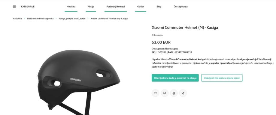 Uz romobil dajem gratis kao poklon novu original Xiaomi kacigu vrijednosti 50+ eura u trgovinama ( vidljivo također na slici)