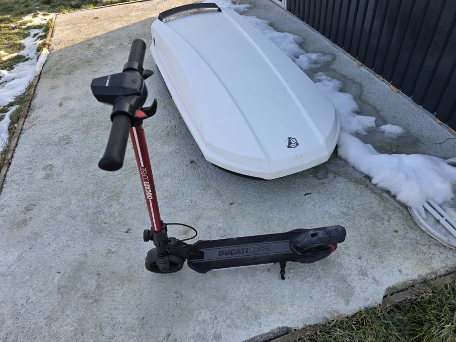 Ima led svijetla za bolju uocljivost i led ekran sa prikazom stanja baterije i brzine...vožen svega 10 dana na moru i od onda stoji u garaži