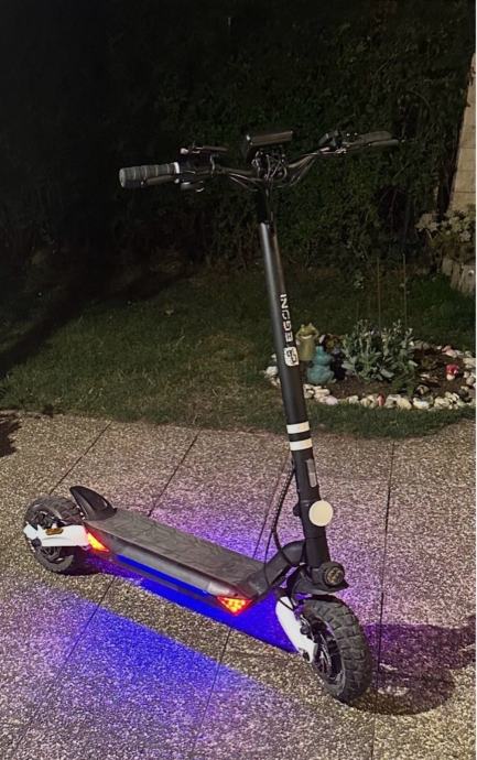 Prodajem električni romobil Egoni S 22. Radi se o modelu s terenskijim gumama pogodnim za različite podloge, sklopivim upravljačem te ugrađenom RGB rasvjetom ispod platforme. Romobil je custom made i ima par ogrebotina