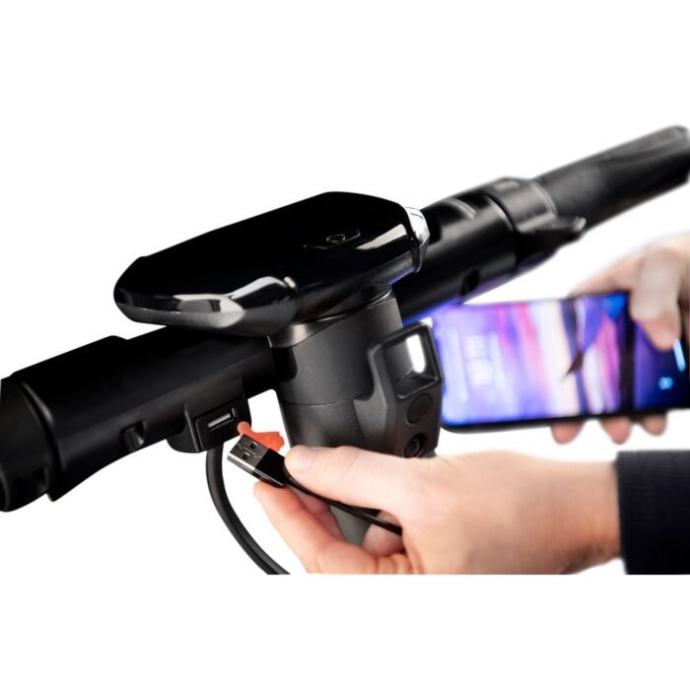 Isto tako, kako bi je uopće pokrenuli morate imati posebnu token karticu koju prislonite na romobil, tek onda se pali električni pogon i LED zaslon na upravljaču. Upravo zato služi NFC konekcija. Zanimljivo je kako ćete preko ovog romobila moći puniti i svoj pametni telefon.