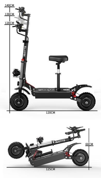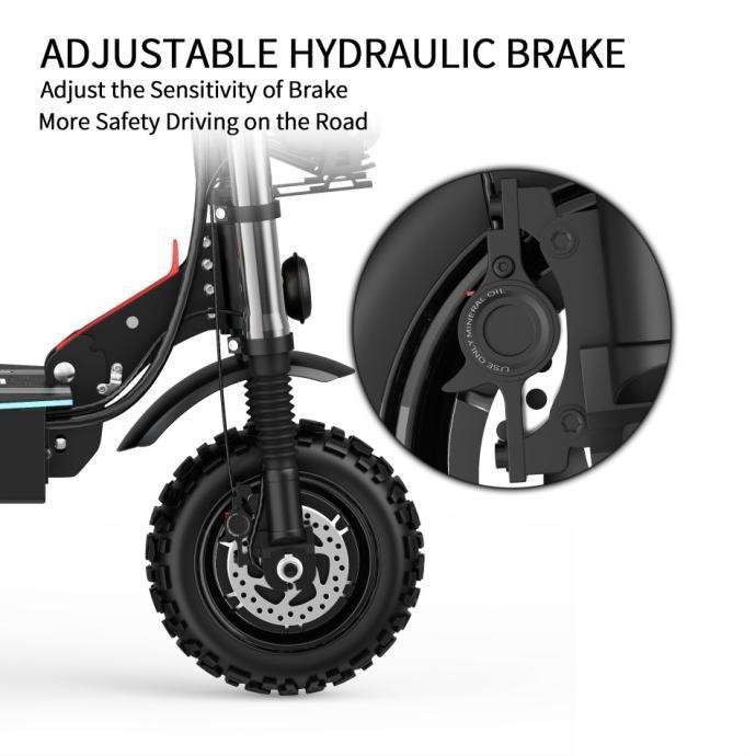 Ovaj skuter opremljen je baterijom od 38 Ah i dvostrukim motorom od 2800 W * 2 koji vam pruža iznimna ubrzanja i performanse. Sa snažnim hidrauličkim sustavom kočenja imat ćete potpunu kontrolu nad zaustavljanjem.