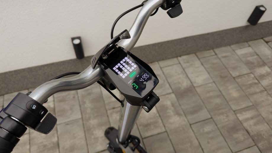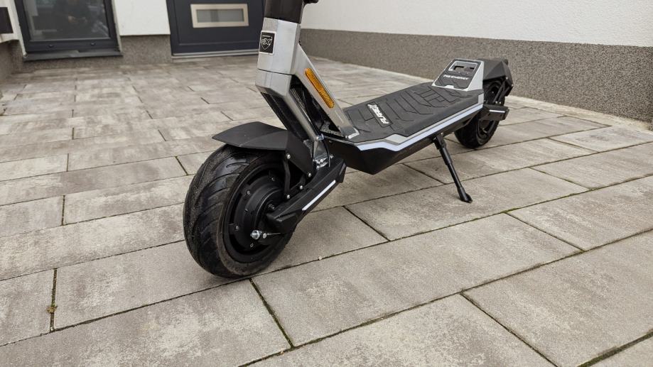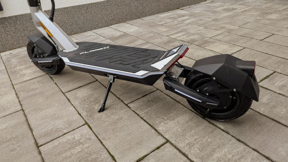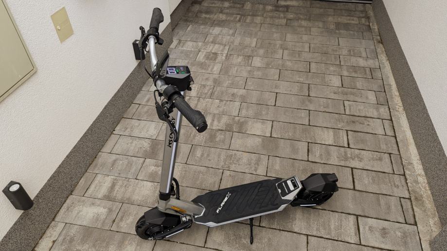 Električni romobil MS Energy FLARE X sa snažnim motorom od 2 x 800W, baterijom od 52V i 18 Ah, elektroničkom varijabilnom regenerativnom kočnicom, bočnim LED svjetlima, LCD zaslonom, gumama otpornima na probijanje i sklopivim mehanizmom.