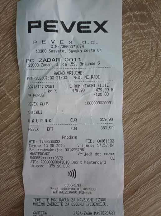 Romobil marke Xiaomi kupljen na moru u Pevex-u jako malo koristen (do ducana i nazad) garancija 2god