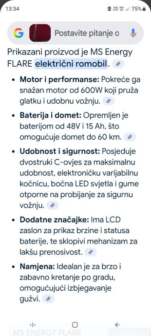 Prodajem potpuno novi MS Energy FLARE električni romobil sa snažnim motorom od 600W i baterijom koja omogućuje domet do 60 km. Opremljen je dvostrukim C-ovjes sustavom za maksimalnu udobnost, LCD zaslonom, bočnim LED svjetlima i praktičnim mehanizmom za lako prenošenje.