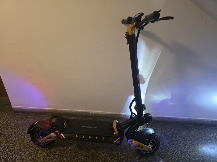 Prodajem nov električni romobil u crno-zlatnoj boji, nekorišten. Opremljen je digitalnim zaslonom koji prikazuje brzinu, razinu baterije i druge važne podatke. Romobil ima LED rasvjetu sprijeda i straga, što omogućava sigurnu vožnju i u uvjetima slabije vidljivosti. Sklopiva konstrukcija omogućava jednostavno skladištenje i transport.
