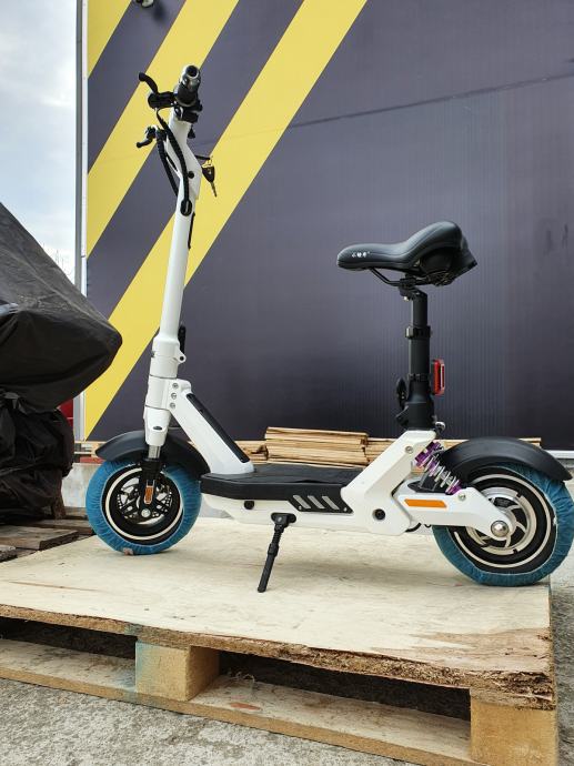 Nosivost električnog romobila je do 110 kilograma, a maksimalna brzina oko 25km/h. Posebnost ovog elektro romobila je sjedalo i mogućnost preklapanja u 2 točke radi lakšeg transporta kao i podesivost sjedećeg mjesta po visini.