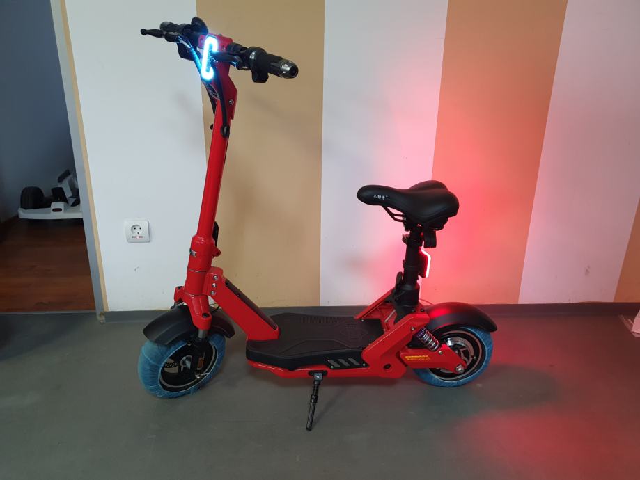 Romobil je opremljen prednjim i stražnjim dvostrukim amortizerima, kao i sa dvije mehaničke disk kočnice i prednjim i stražnjim LED svjetlom, USB punjačom i Bluetooth sučeljem s zvučnikom. Gume sa zračnicama su dimenzija 10×3,0.