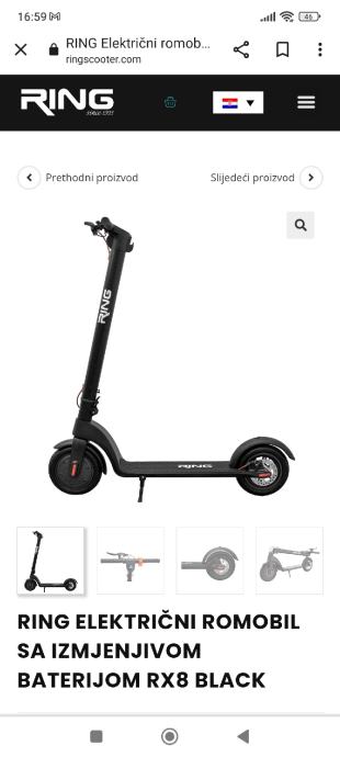 Vise informacija o specifikacijama električnog romobila mozete pogledati i na linku: https://ringscooter.com/hr/proizvod/ring-elektricni-romobil-sa-izmjenjivom-baterijom-rx8-black/