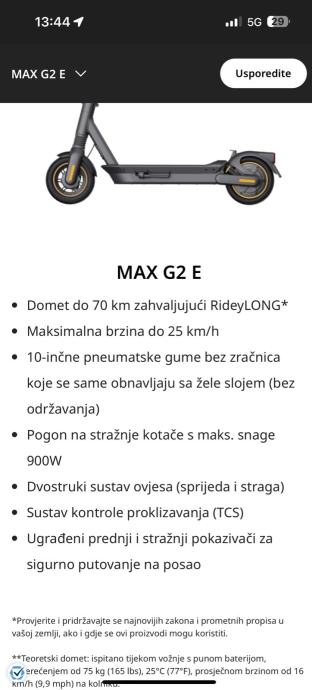 Prodajem Romobil Segway Max G2, može prijeći do 70 km, Max brzina 35 kmh, 900W. Upravljanje putem aplikacije. Serijski ugrađen uređaj za praćenje romobila. Ima sustav kontrole prouproklizavanja.