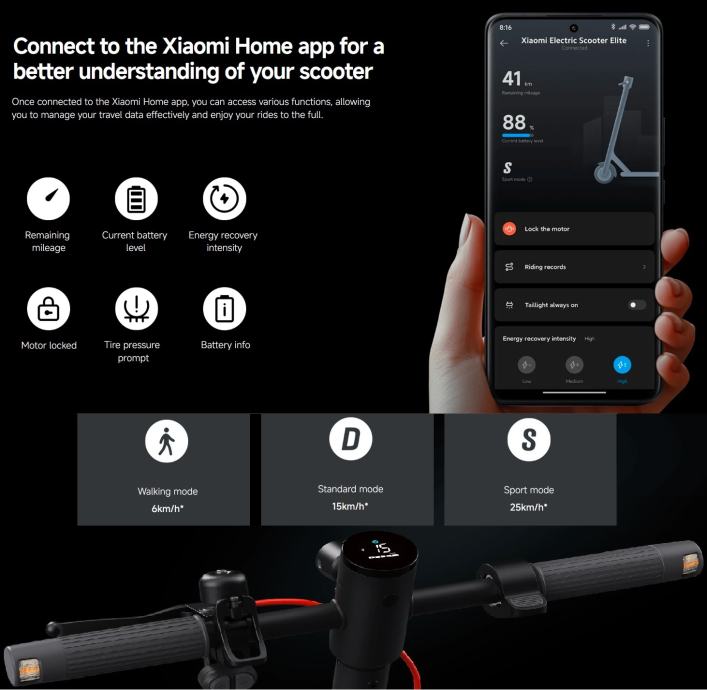 Maksimalna brzina: 25km/h (3 moda: hod 6km/h, standardni 20km/h i sport: 25km/h)