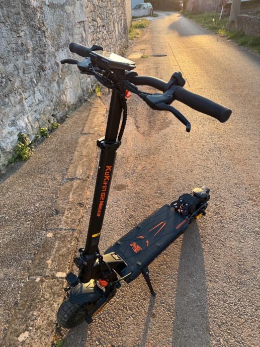 Prodaje se električni romobil Kukirin G2 Master. Kupljen prošle godine u 6 mjesecu. Romobil je doslovno kao nov.Punjen jednom i ima 51 km prijeđenih. Prodaje se iz razloga što se nema vremena za vožnju. Uz romobil dolazi punjač, alat i držač za mobitel nikad montiran na romobil.