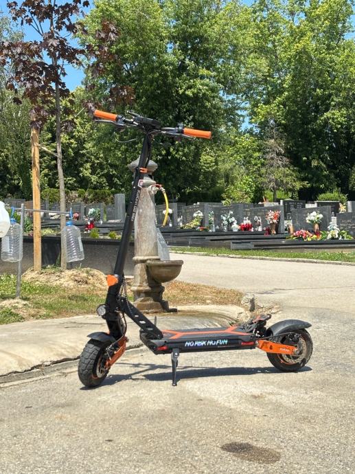 Prodajem Kukirin g2 max s 3300+km romobil je kupljen u 11 mjesecu 2024 razlog prodaje je kupnja novog. Na romobilu nema nogare i iskljuceno je svijetlo i truba iz nutra a provrcen je sarafa pa nemogu ukljuciti(to vam mogu u servisu rijesiti). Zapigan je zadnji obruc felge al se moze vozit. Prednja kočnica je slomljena ali idalje radi. Nova brava malo oštečen metal brave. Kontroler je kupljen prije 2tj. Prednja guma je u dobro stanju a zadnja u malo lošijem. Uz romobil dobijete sic, metalni držač mobitela, dva kljuca jedan malo savijen i napuknut na drugoj strani drugi nov. Gripov malo oštećeni. Zadnji blatobran nov. Za vise info pošaljite poruku.0957156647