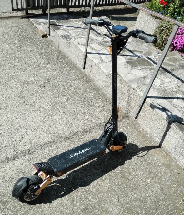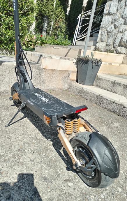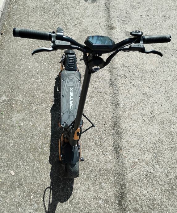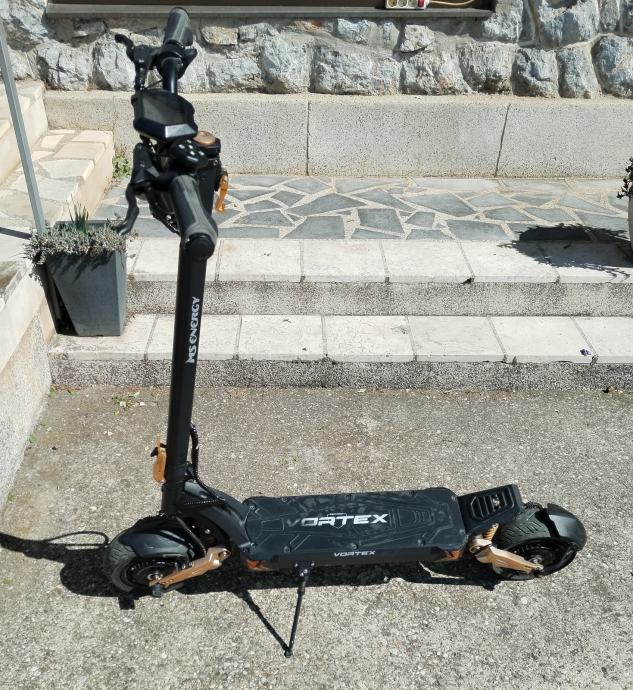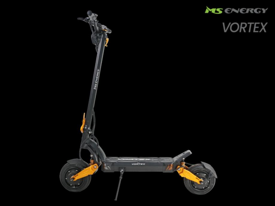 MS ENERGY E-ROMOBIL VORTEX gold ultimativni električni romobil! Predstavljamo najviše performanse koje izražava električni romobil MS Energy VORTEX s ugrađenim motorima 2 × 1200 W koji pružaju izniman okretni moment. Istražite budućnost s najnovijim naprednim značajkama koje pružaju izvrsna rješenja za svaki stil vožnje na svim terenima. Redefinirajte svoju vožnju tehnologijom koja se prilagođava vašim potrebama uz Smart BMS, koja pruža pametan i učinkovit sustav upravljanja energijom. Glavne prednosti: Gume 25,4 cm (10'') s funkcijom automatskog brtvljenja u slučaju curenja zraka, oštećenja ili bušenja. 2 × 1200 W motor s iznimnom snagom, maksimalnim okretnim momentom i lakim ubrzanjem. Domet do 70 km s jednim punjenjem s 52V 18 Ah punjivom baterijom. Prednji i stražnji ovjes sa sklopivim dizajnom za jednostavno prenošenje. Napredni sustav kočenja prednji i stražnji disk / disk kočnica i varijabilni EBS (Electronic Braking System) s funkcijom regeneracije baterije. Veliki i prozirni LCD ekran sa svim informacijama o vožnji. LED osvjetljenje sprijeda i straga + LED pokazivači smjera. Robusna konstrukcija od aluminijske legure za nosivost do 120 kg. Besplatna aplikacija za Android i iOS uređaje s dodanom značajkom Smart BMS.