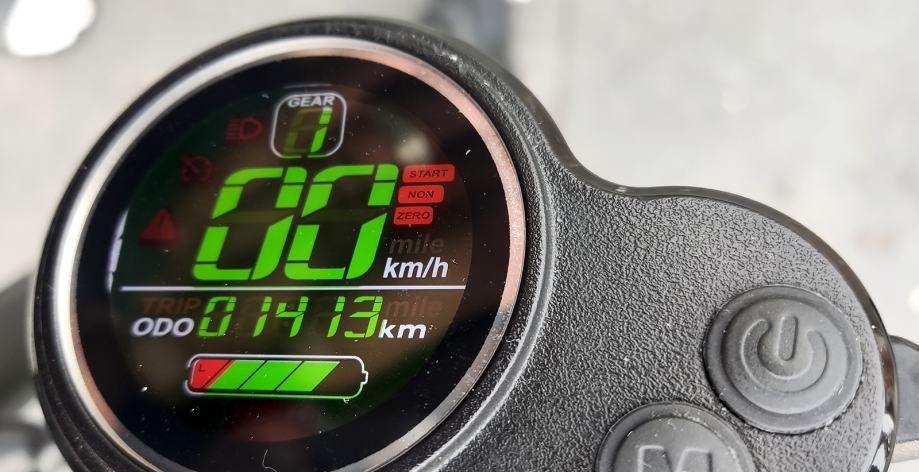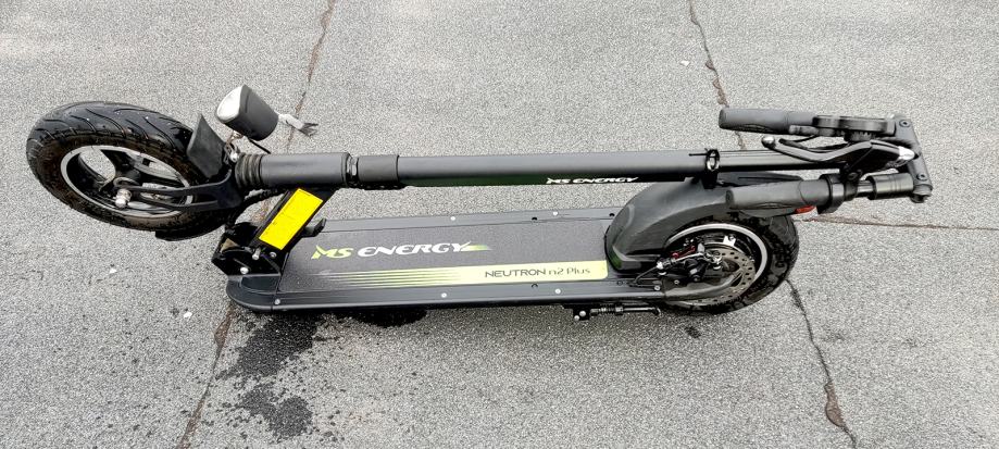 Motor 400W, baterija traje realnih 20-ak kilometara i ovisi o načinu vožnje i nagibu. Uredno održavan, nedavno zamijenjene kočione pločice. Brzina 25km/h u skladu sa novim zakonom. Masa je 14.2kg i uz podesivu visinu stupa volana pogodan je za sve vozače.