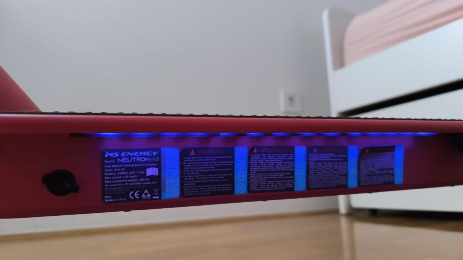 Navedeni romobil je u odlicnom stanju. Malo je vozen i uglavnom samo stoji. Baterija je dobra i sa punjenjem prode tridesetak km. Maksimalna brzina mu je 25km/h. Uz njega ide i njegov punjac. Kocnice, prednji farovi, stop svijetlo i LED osvijetljenje u podnici rade ispravno.