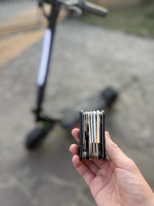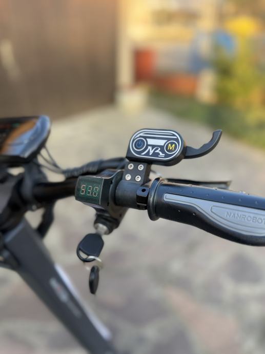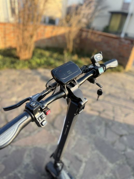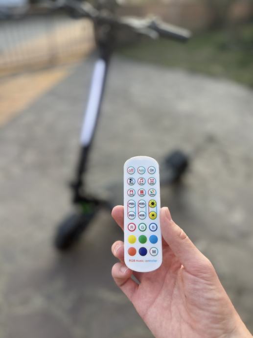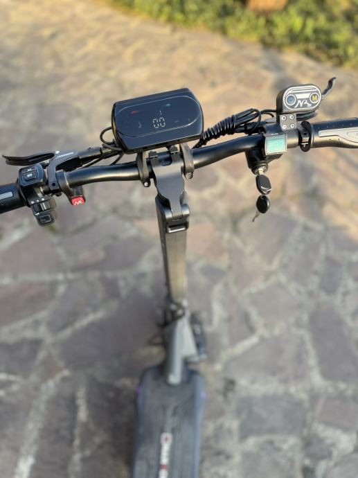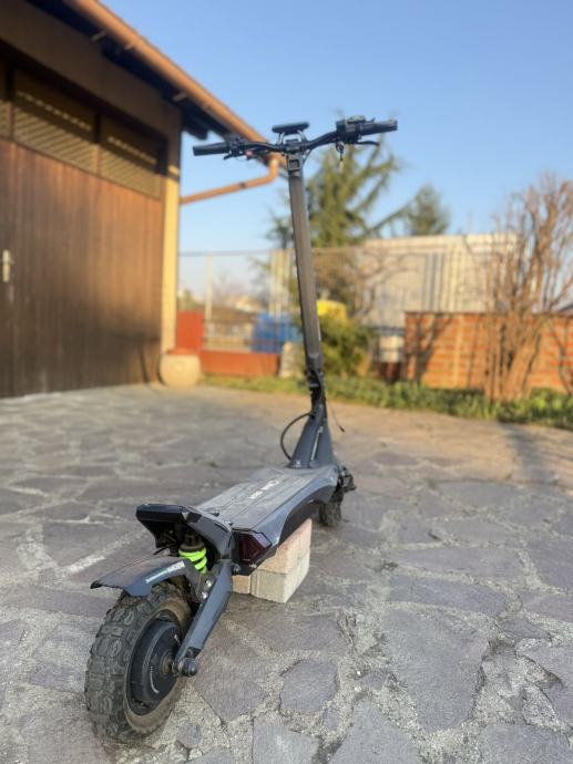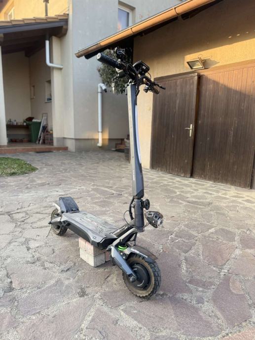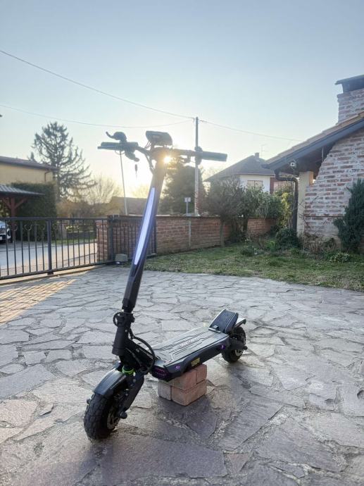 Prodajem navedeni romobil, malo vožen (500 km). Ispravne gume, amortizeri, kočnice i dr. Baterija prednjeg motora servisirana u garantnom roku. Motori: 2 x 2000W. Max. brzina 65 km/h. Domet 50 - 60 km (oko 30 - 40 u stvarnoj vožnji). Baterija 52V 26 Ah. Nosivost 150 kg. Vrijeme punjenja 10 sati. Hidraulične kočnice, LED svjetla s mogućnošću mijenjanja boja. Promjer kotača 10".
