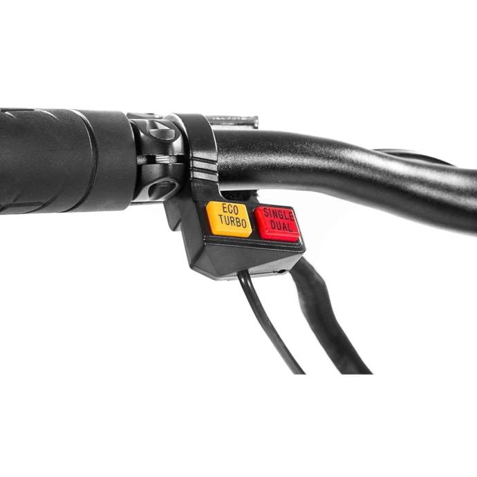 Dva motora bez četkica voze ga do najveće brzine od 65 km/h. Lako prevlada padine do 15 ° (više od 26%). Nosivost romobila je 120 kg.
