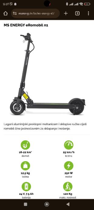 Prodajemo električni romobil n10 u dijelove, ne radi baterija.