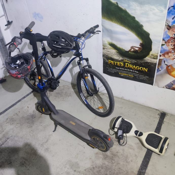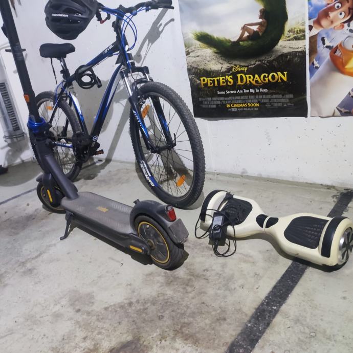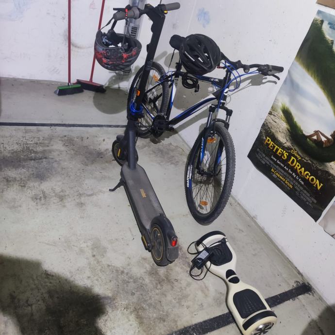 Prodaje se romobil Ninebot, bicikl i hoverboard. Uz to ide i dodatna oprema: kaciga za bicikl, kaciga za romobil, dva katanca za romobil i bicikl, silikonsko sjedalo za bicikl, pumpa za bicikl,te nosači za objesiti bicikl na zid. Cijena za sve skupa je 500 EUR, a može se i pojedinačno prodati po dogovoru.