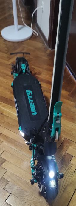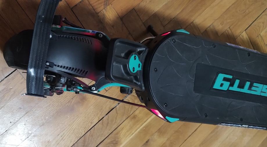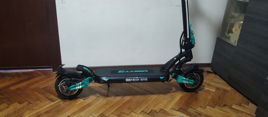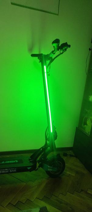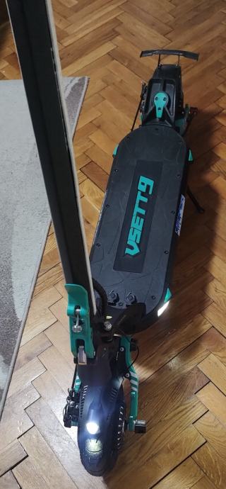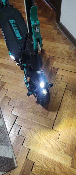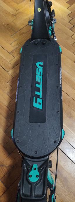 Prodaje se romobil Vsett 9 sa orginalnom ambalažom, i jamstvom koje traje do rujna 2025. Romobil je u izuzetno super stanju, gotovo kao nov. U ovlaštenom servisu je zamjenjena baterija, kontroler, ekran i punjač. Ima novu prednju gumu i zračnice sve rađeno u ovl servisu. Ugrađene led osvjetljenje na stupu volana koje noću čini romobil izuzetno uočljiv. Ledice su stavljene u kućnoj radinosti, ispod na podnici je stavljena baterija koja napaja led svijetla, pritomu nije dirana tvornička instalacija romobila. Romobil ima 3 moda rada. Najveća brzina je 50 km/h dok je u prvom režimu ide maximalno 25 km na sat. Izuzetno je siguran za vožnju i ima jake kočnice. Vozač mora obavezno imat kacigu. Uz romobil dolazi original ambalaža, upute, punjač, cijev za pumpanje guma. Zamjene su isključene.