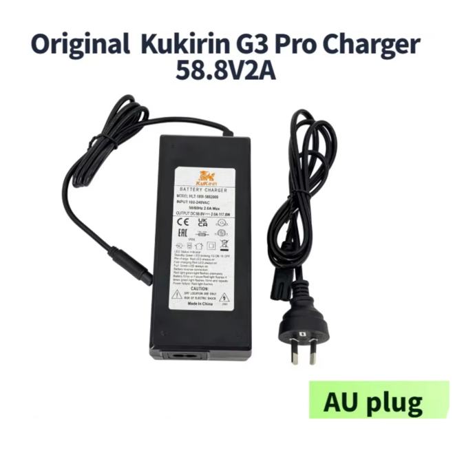 Prodajem novi originalni punjač za električni romobil Kukirin G3 Pro. Punjač ima izlazni napon od 58.8V i struju od 2A. Dolazi s AU utikačem.