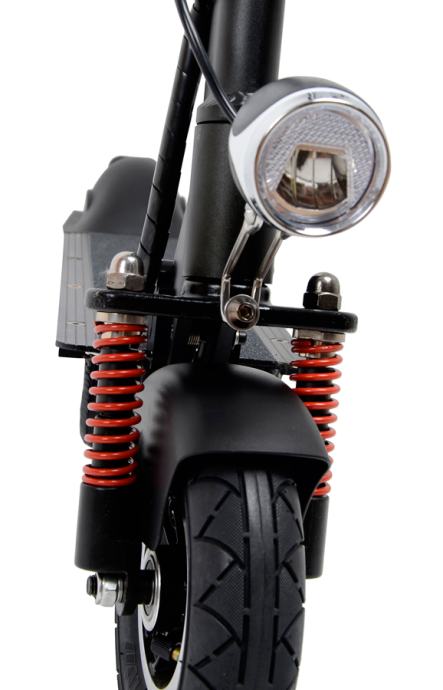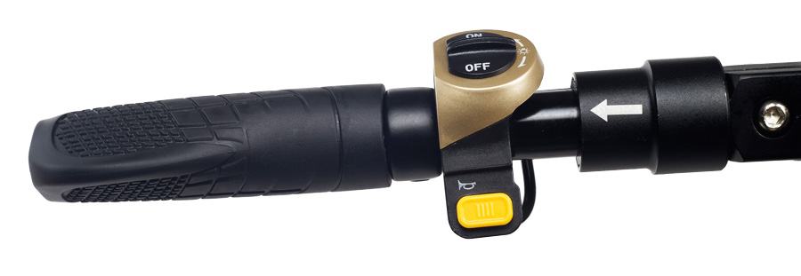 Prednje i stražnje svjetlo napajaju se iz centralne baterije, a uključuju se pomoću prekidača na upravljaču, gdje se nalazi i tipka za trubu. Romobil se zaustavlja pomoću stražnje kočnice na kotaču, a kod kočenja se uključuje i stražnje svjetlo.