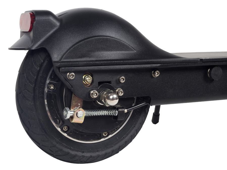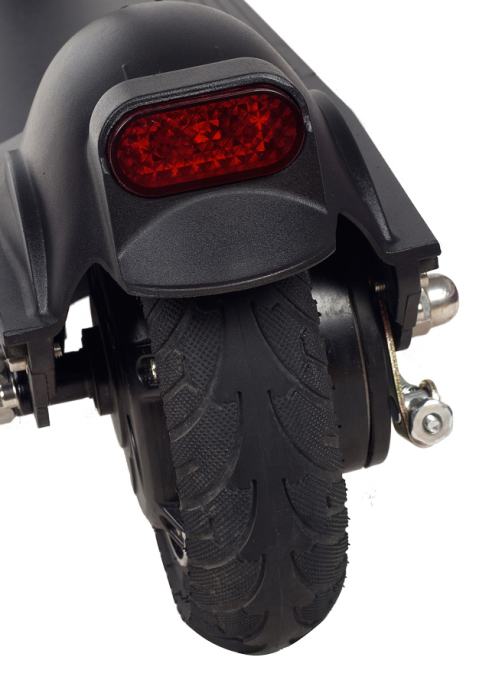 Gume su promjera 8" (prednja je na napuhavanje, a stražnja je čvrsta) pa lako prelaze preko manjih neravnina. Otporni prednji amortizer ublažuje neugodne vibracije tijekom vožnje, a kotače štite i blatobrani.