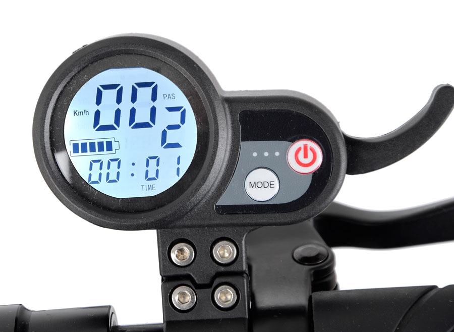 Baterija Li-Ion 10,4 Ah puni se pomoću prijenosnog punjača u utičnici od 220 V, na puni kapacitet za 5-7 sati. Pri standardnoj vožnji s romobilom na jedno punjenje možete proći približno 25 km – pri kraćim vožnjama ga ne trebate ni puniti svaki put. Ukupna udaljenost može biti i kraća i dulja; ovisi o težini vozača, tipu terena, stilu vožnje, vanjskoj temperaturi itd. U slučaju nužde romobil se može voziti i odgurivanjem i s isključenim motorom. Na transreflektivnom zaslonu na kojem se vidi čitati i pri direktnom sunčevom svjetlu možete pratiti stanje baterije, brzinu, vrijeme vožnje i prijeđenu udaljenost. USB utor sa stražnje strane zaslona može i puniti Vaš mobilni telefon ili tablet, za vrijeme vožnje ili u stanju mirovanja pomoću dvosatnog brojača.