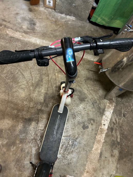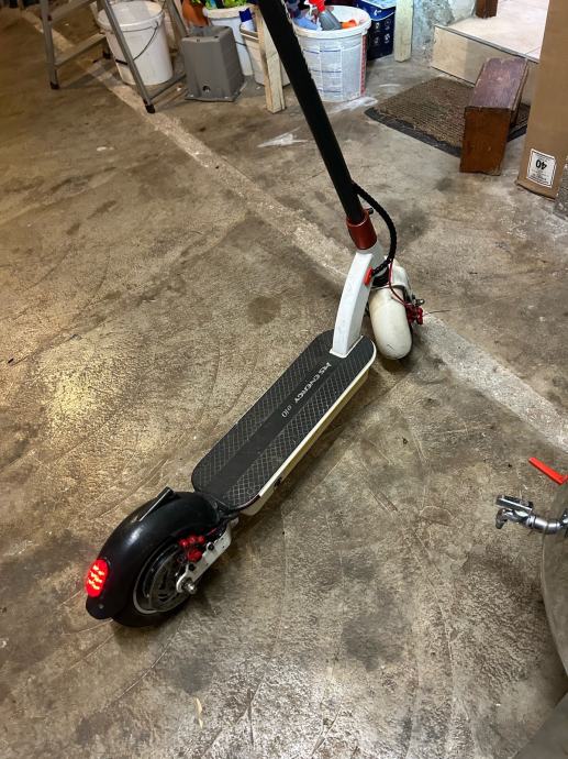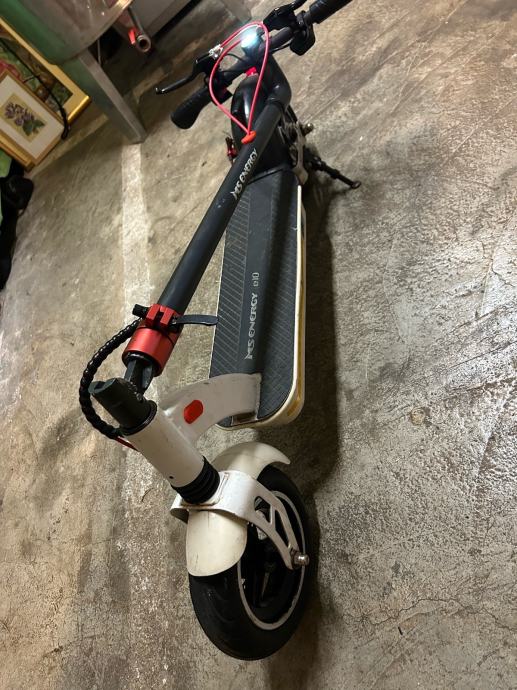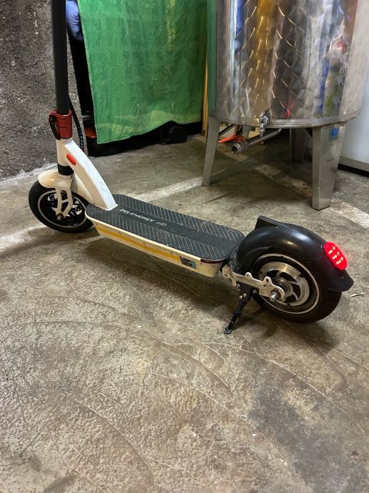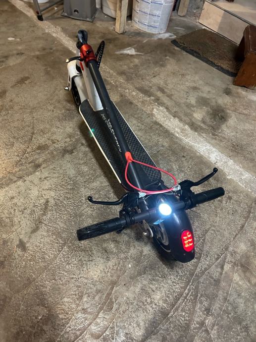 Romobil je u dobrom stanju. Veliki zračni kotači 10” Prednji i zadnji amortizeri te prednja i zadnja disk kočnica. Snažna baterija, jaki motor s tri brzine vožnje i veliko silikonsko gazište. Pripadajući punjač.