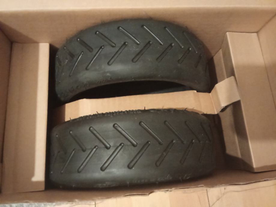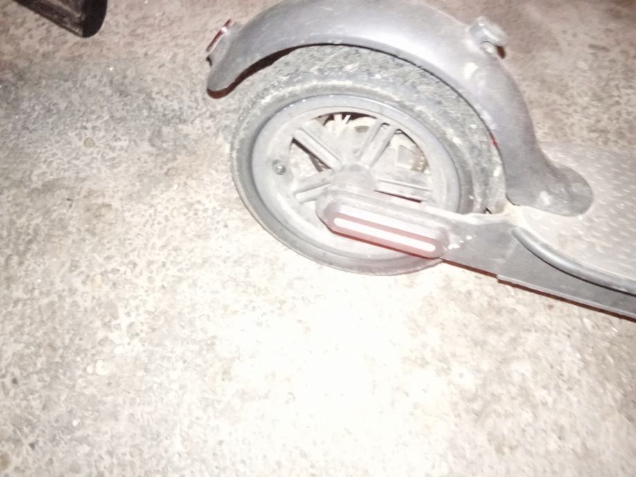 Romobil je u dobrom stanju dolazi sa punjacom i 2 rezervne gume ( prednja i zadnja) kod romobila je probušena zadnja guma ali zato imam rezervnu gumu za promjenit