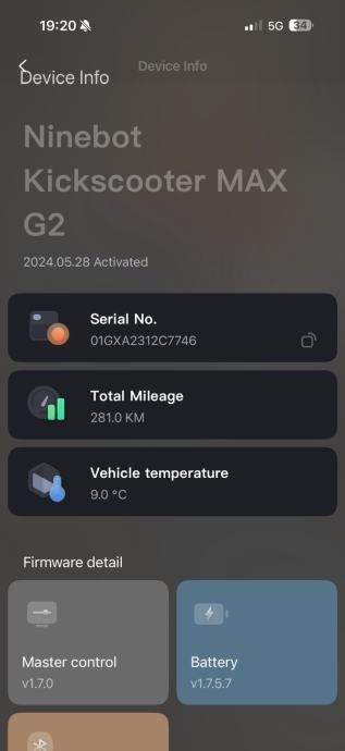 Romobil iz tvornice dolazi zaključan na 25kmh za EU tržište, ja sam naručio novi kontroler za njega tako da je otključan i ima opciju tempomata. Brzina je sad 35-40 kmh. Original kontroler imam, dajem uz romobil. Prešao dosad 280km
