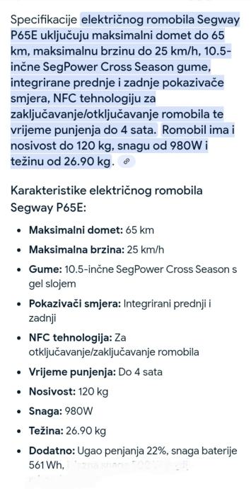 Prodajem električni romobil Segway P65,nema amortizer,gradski model.