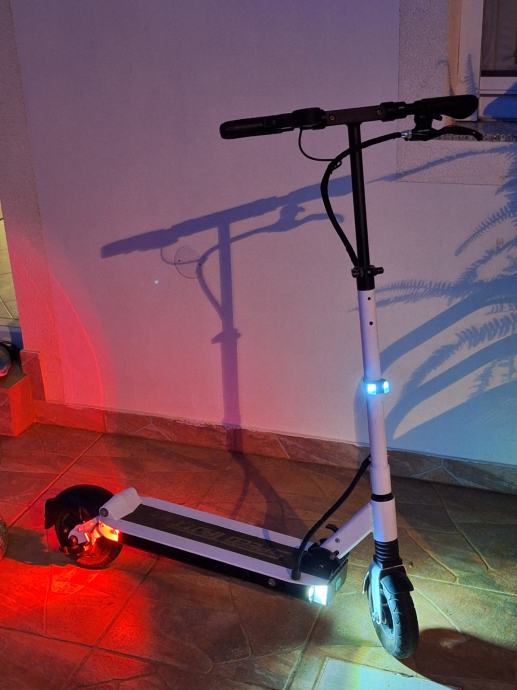 U dobrom je stanju,redovno održavan. Sve funkcije rade a baterija ima odličan kapacitet (led svjetla prednja zadnja,podesiva visina upravljača,lako se sklapa i može stati u prtljažnik automobila).