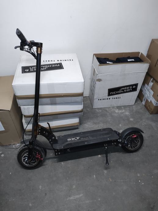 SXT ultimate Pro elektro scooter - mono ili dual drive motor, 2*1320 W, 3 brzine ( do 25 do 45 do 60), domet do 50 km ovisno o načinu vožnje , Li On baterija, dio gdje se stoji dovoljno širok za ugodniju vožnju, disk kočnice, tubeless zračne gume, nosivost do 140 kg, savladava sve cestovne uspone bez problema