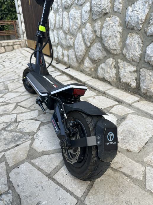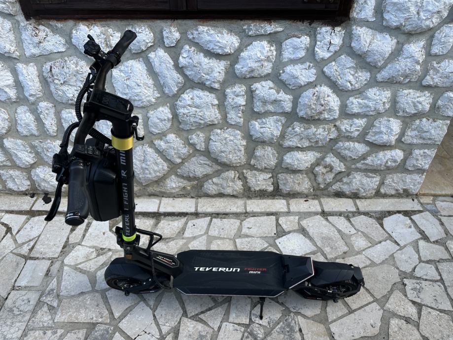 Teverun Fighter Mini, hidraulicne disk kocnice, hidraulicni amortizeri, lako podesivi na tvrdje ili mekse postavke. NFC kartica za otkljucavanje, 5 brzina voznje, spajanje s aplikacijom preko mobitela. Uz romobil ide punjac, 2 nfc kartice, + poklanjam torbicu i mini lokot. Star je 18 mjeseci, odlicno se vozi, prodajem teskog srca, radi kupnje bicikla.