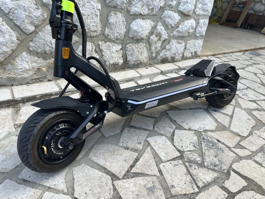 Teverun Fighter Mini, hidraulicne disk kocnice, hidraulicni amortizeri, lako podesivi na tvrdje ili mekse postavke. NFC kartica za otkljucavanje, 5 brzina voznje, spajanje s aplikacijom preko mobitela. Uz romobil ide punjac, 2 nfc kartice, + poklanjam torbicu i mini lokot. Star je 18 mjeseci, odlicno se vozi, prodajem teskog srca, radi kupnje bicikla.