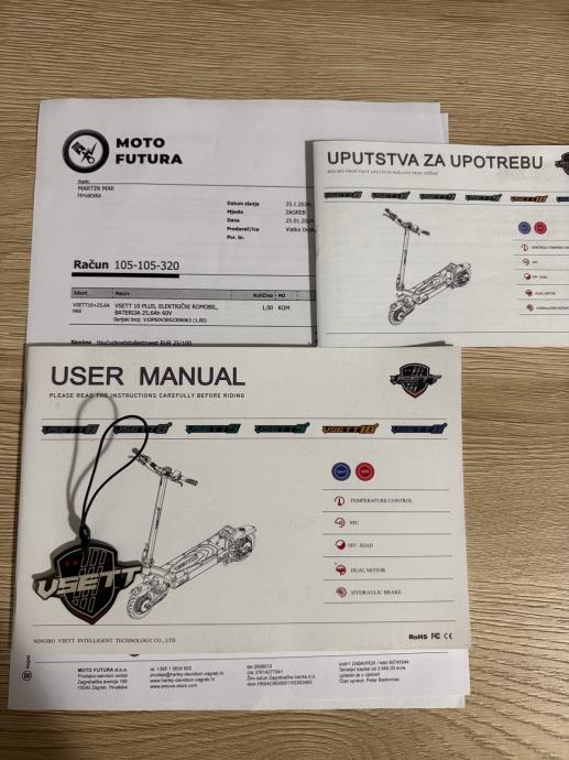 Elektricni romobil Vsett 10+ 25,6Ah 60V, kupljen 25.1.2024., ima 1650km, promjenjana zadnja guma i zadnja disk kocnica i plocice. 2 kljuca. Torbica gratis.