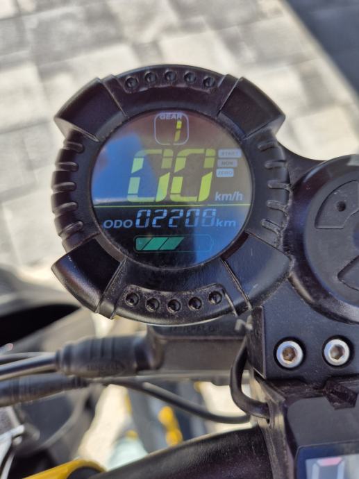 Vset 10+ 25.6Ah, kontinuirano snaga 2 x 1400W, maksimalna snaga 4200W. Brzina 85 km/hr, Litiska baterija 60V 25.6Ah., svjetlo, Zmijavci, nosivost do 130 kg. Dva punjaca. Posjedujem racun