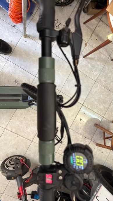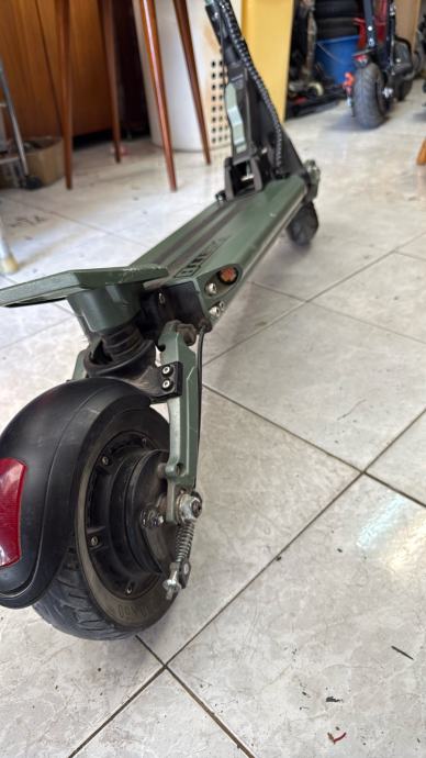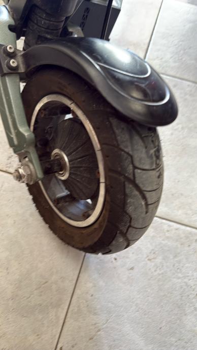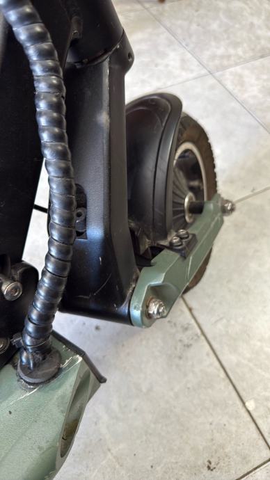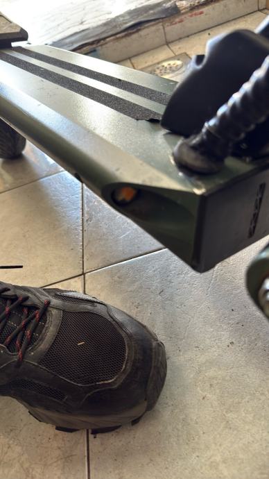 Prodajem rabljeni električni romobil VSETT 8. Radi se o popularnom modelu poznatom po solidnoj konstrukciji, pneumatskim gumama koje dobro apsorbiraju neravnine te pouzdanom hub motoru u kotaču. Romobil je sive i crne boje, s prepoznatljivim sklopivim mehanizmom upravljača.