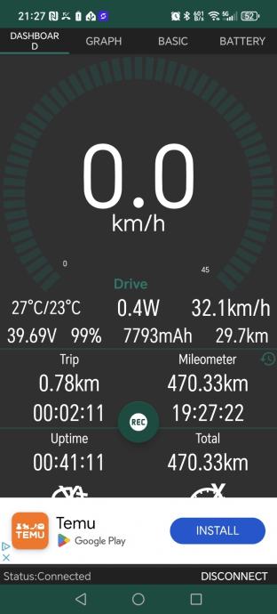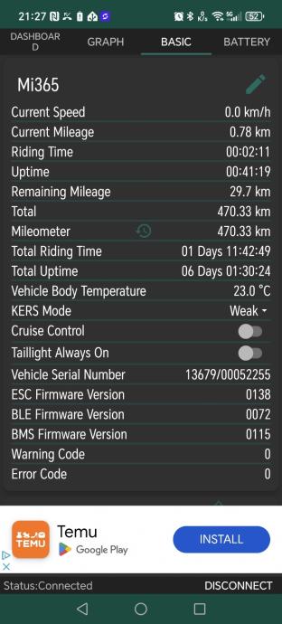 Napravljen je upgrade softwera tako da ima tvornicki mod, I unlock mode u kojem ide 35km/h te ide puno bolje uzbrdo.