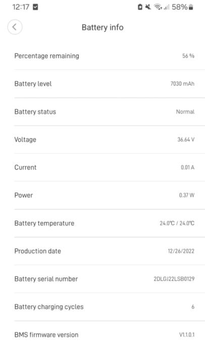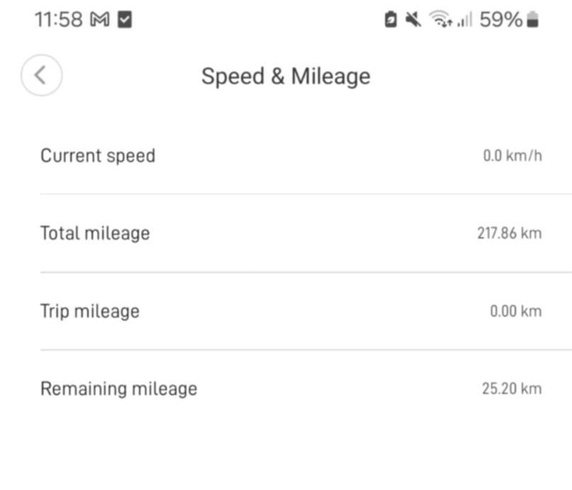Romobil je vožen 15 dana na relaciji posao-stan i skladišten u stanu. Kao nov (još uvijek ima "brkove/dlačice" na gumama). Iz aplikacije je vidljivo koliko je prošao - 217km i slika kilometraže iz aplikacije je u oglasu, kao i slika stanja baterije (kao nova), punjena 6 puta. Dolazi s punjačem.