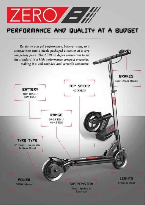 Sve ove značajke dolaze po vrlo primamnjivoj cijeni, što ZERO 8 čini jednim od najpristupačnijih električnih romobila sa visokim performansama na tržištu.